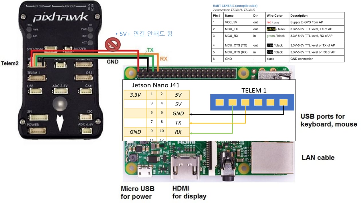 컴패니언 컴퓨터와 FC를 연결하는 방식은 여러가지가 있지만, 그 중에서 가장 많이 사용되는 GPIO(UART)를 이용한 연결 방식 입니다.