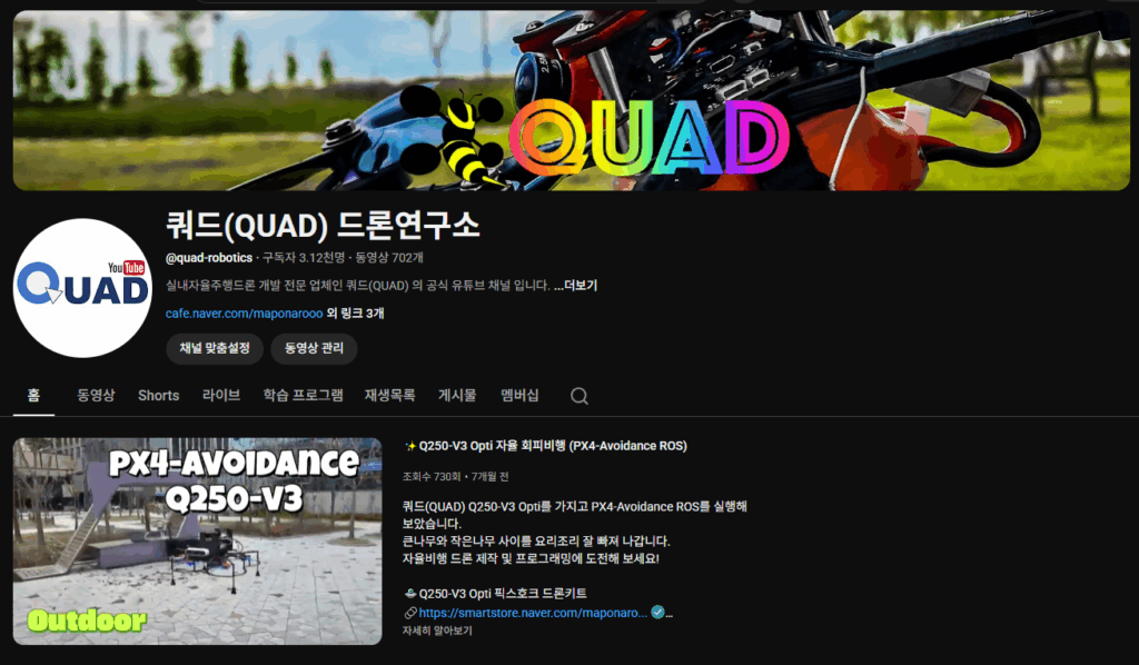 문서를 검토했지만 질문에 대한 답변을 찾지 못한 경우 쿼드(QUAD) 드론연구소 공식 카페에 참여하면 전문가가 기꺼이 답변해 드리도록 하겠습니다. 우리는 또한 ArduPilot, PX4, 실내 자율 주행, 군집 드론을 코딩하는 프로그래머를 위한 네이버 카페도 운영 하고 있습니다.