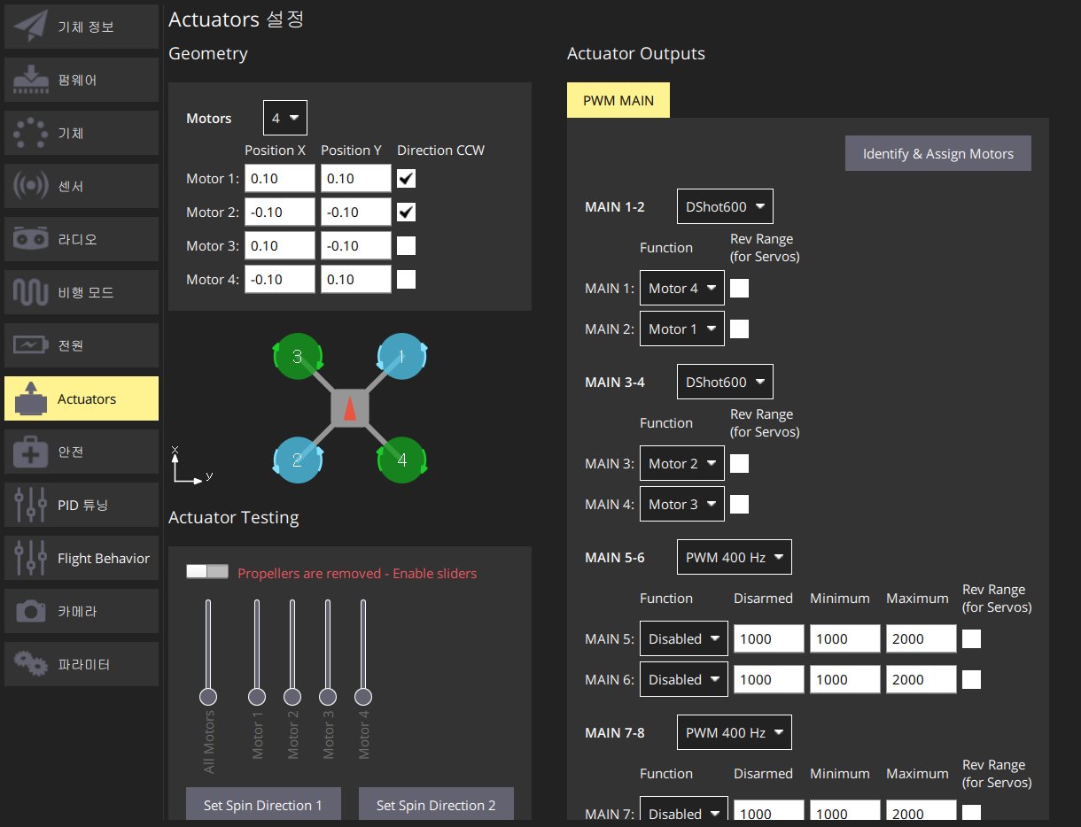 ESC 프로토콜을 Dshot으로 설정하면 모터의 회전 방향을 커멘드로 바꿀 수 있습니다.