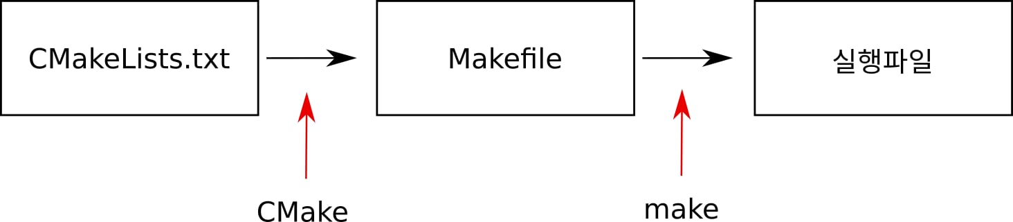 CMake 는 빌드 파일을 생성해주는 프로그램 입니다. 다시 말해 CMake 를 통해서 프로젝트를 빌드를 하는 것이 아니라, CMake 를 통해서 빌드 파일을 생성하면 빌드 프로그램을 통해서 프로젝트를 빌드 하는 것입니다. 예를 들어서 make 를 사용한다면 CMake 를 통해서 Makefile 을 생성할 것이고, 요즘 핫한 Ninja 를 사용한다면 CMake 를 통해서 .ninja 빌드 파일을 만들어줄 것입니다.