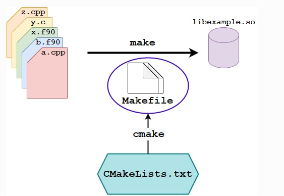 예를 들어 Make를 사용하여 빌드를 하는 경우, CMakeList.txt 내에 CMake 문법에 맞게 명령어들을 작성하고 CMake 프로그램을 실행하면 CMake가 CMakeList.txt에 정해진 대로 Makefile을 생성하고 사용자는 cmake 혹은 make 명령어를 통해 빌드할 수 있습니다.