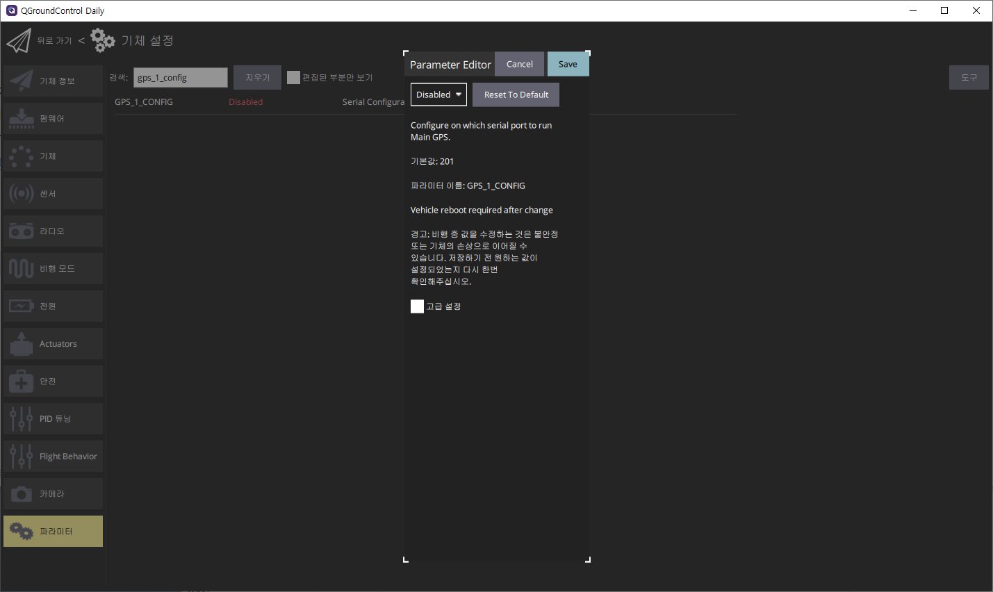- GPS 파라메터 변경GPS_1_CONFIG = Disable 설정
