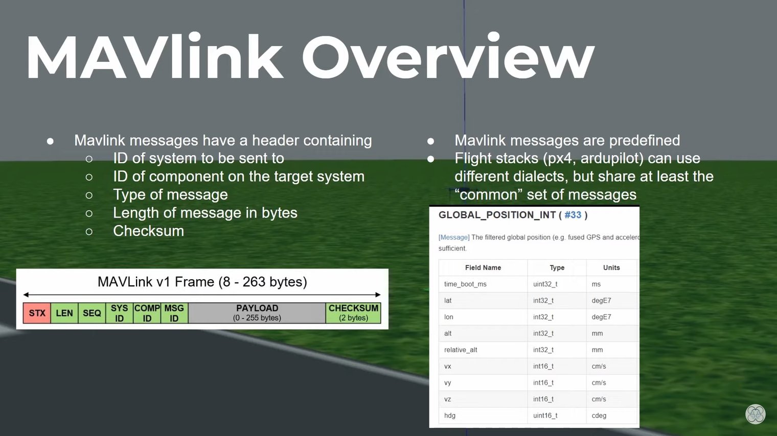 MAVLink는 드론과(및 온보드 드론 구성 요소 간) 통신을 위한 매우 가벼운 메시징 프로토콜입니다.