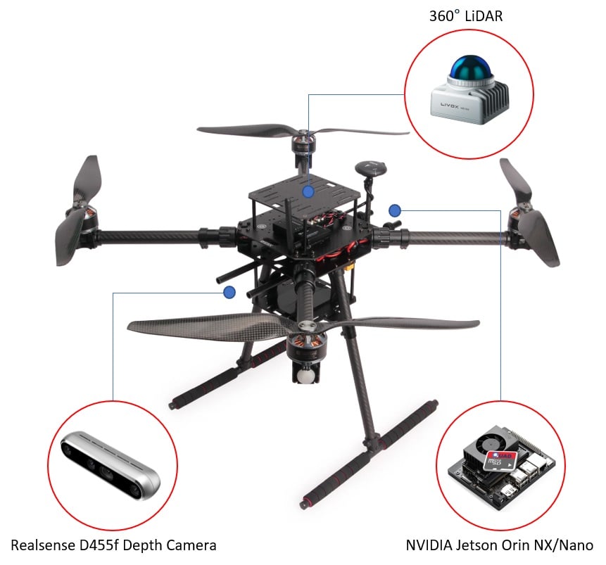 Livox Mid-360과 같은 360도 LiDAR 스캐너를 이용하여 SLAM을이용한 VINS(Vision-INS) 기반의 자율비행을 가능하게 할 수 있습니다.