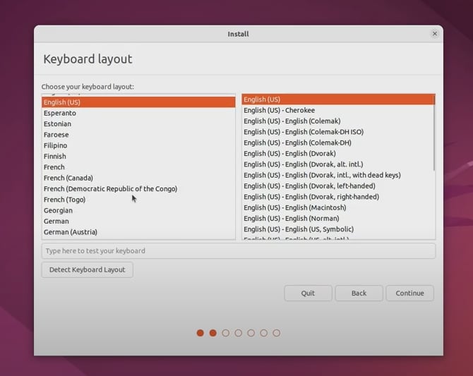 3-2. 키보드 레이아웃을 선택하고 오른쪽 [Continue] 버튼을 클릭합니다.
