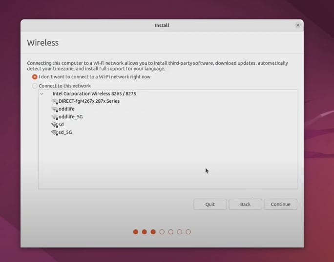 3-3. 무선인터넷을 접속할지 여부를 선택하고 [Continue]를 클릭합니다.