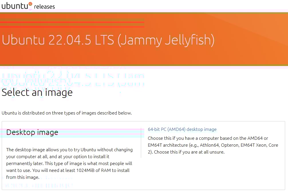 2-2. 공식 홈페이지에 접속해서 64-bit PC (AMD64) desktop image 를 선택 합니다.