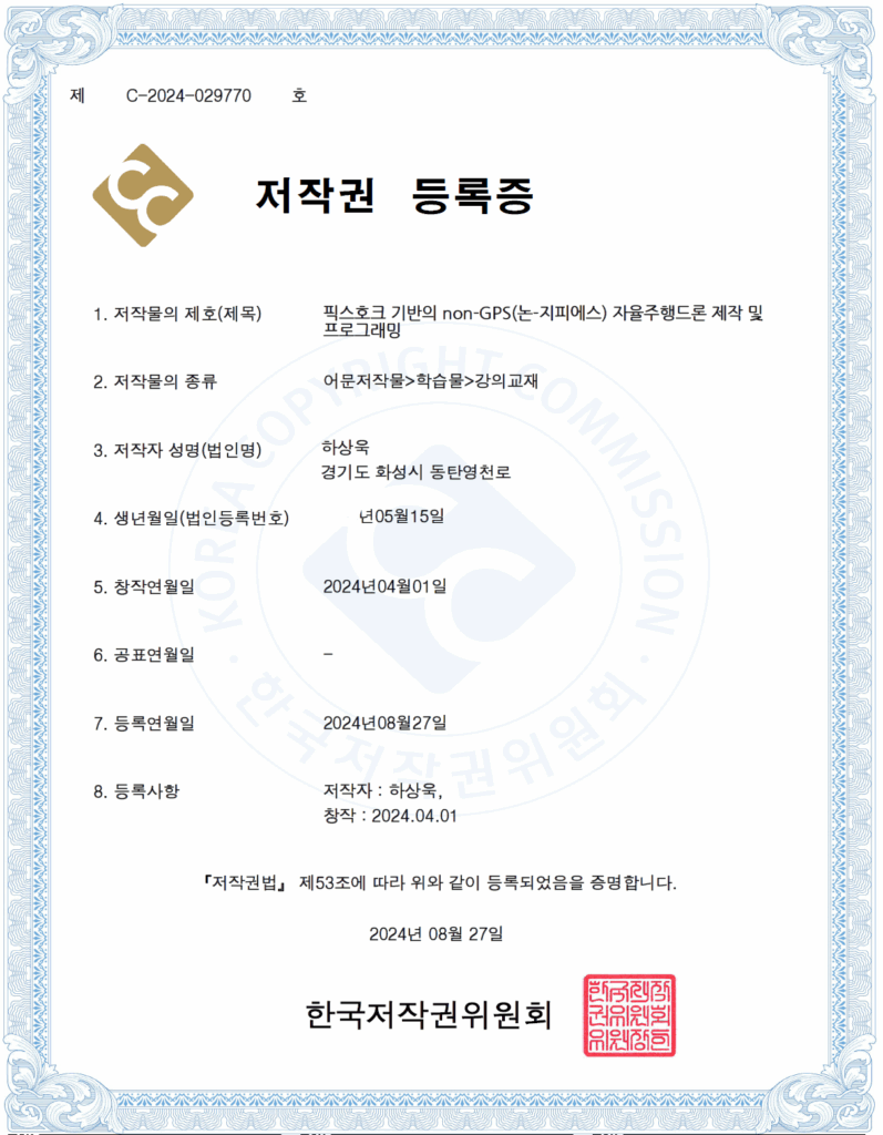 본 온라인 교재는 쿼드(QUAD) 드론연구소의 온라인/오프라인 강의 교재로 무단 복제 및 사용을 금합니다.